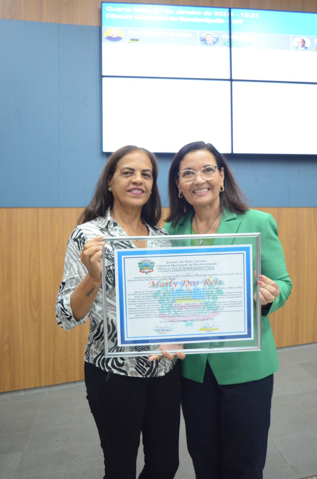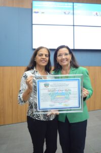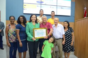 Uma das homenageadas pela vereadora foi Marly dos Reis, que ao longo dos anos prestou inestimáveis serviços ao Sanear e desempenhou o papel de coordenadora do Cras. Além disso, Marly foi eleita conselheira tutelar nas últimas eleições realizadas no ano passado. Em agradecimento à homenagem, Marly expressou: “Para mim, é uma honra receber essa homenagem da vereadora e da Câmara”.