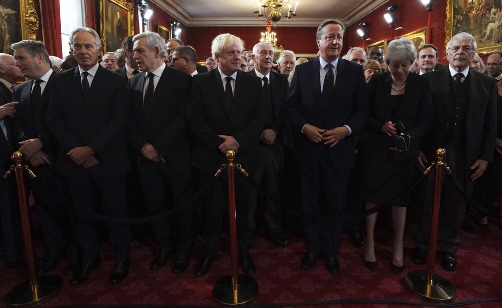 Ex-primeiros-ministros britânicos participaram da cerimônia. — Foto: Kirsty O’Connor/Pool Photo via AP