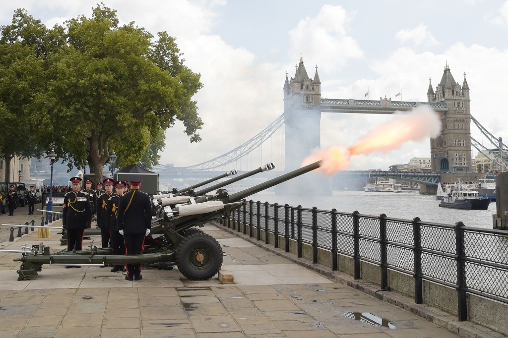 Trompetistas também tocaram uma fanfarra da sacada e salvas de tiros foram disparadas na Torre de Londres, uma fortaleza às margens do rio Tâmisa, e no Hyde Park, um parque no centro da capital britânica.
